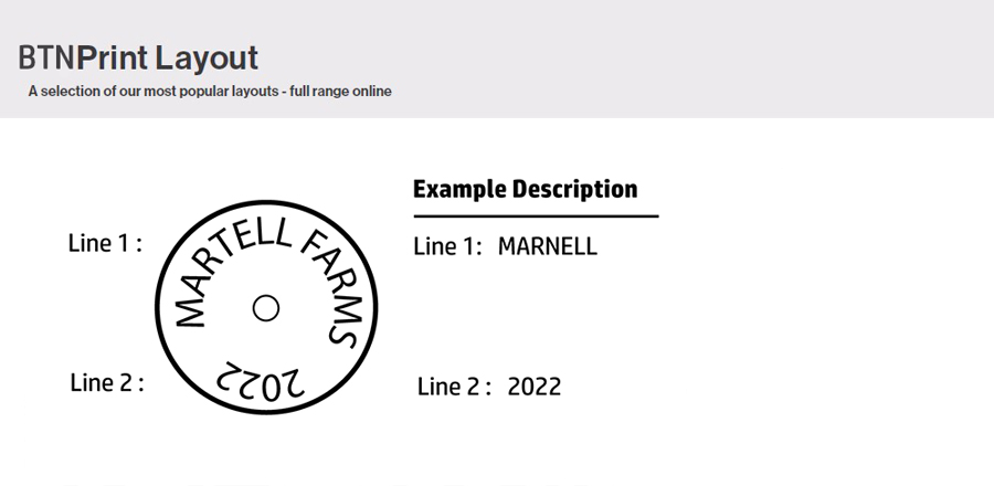 Please note that colors displayed on your monitor may appear different from the actual tag color and that the layout previews are indicative only, designed to show relative sizes of text, fonts and position.